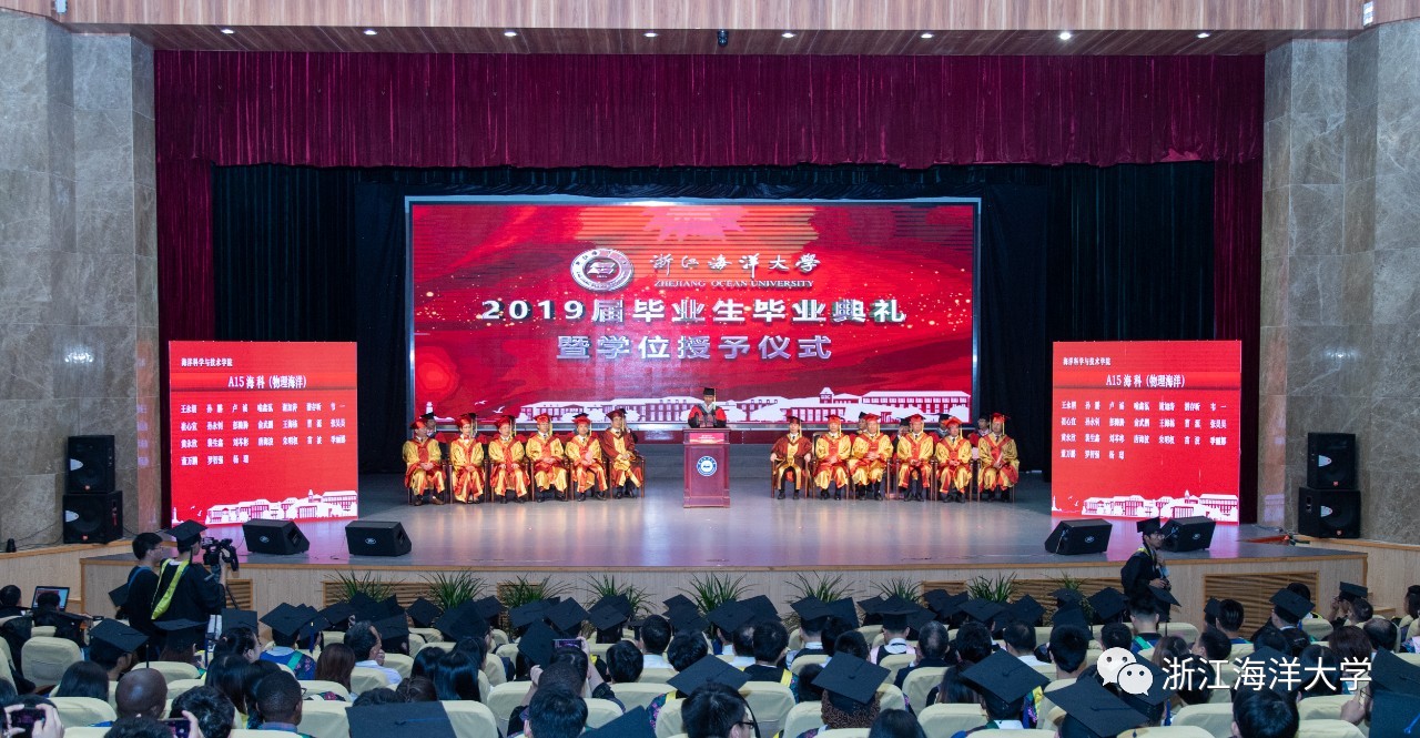 6月14日,浙江海洋大学2019届毕业生毕业典礼暨学位授予仪式在学校杨存国会展中心隆重举行。校领导严小军、陈建孟、叶舟、王捷、徐士元、徐汉祥、谢永和、吴承亮、刘秀丽、虞剑锋、陈宏祖、许文军等出席,毕业典礼由学校党委副书记叶舟主持。学校相关职能部门、各学院负责人,学生工作负责人,教师代表、辅导员、毕业班班...