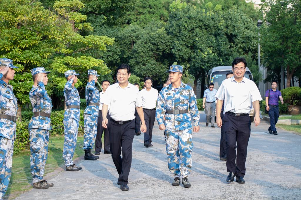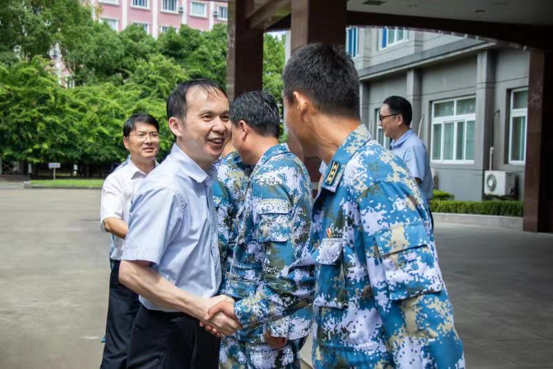 7月31日,在第92个建军节来临之际,浙江海洋大学校长陈建孟、党委副书记叶舟带领相关部门负责人,赴共建单位中国人民解放军92012部队、舟山警备区走访慰问。陈建孟代表学校向部队官兵送上节日的祝福,并对92012部队和舟山警备区长期以来给予学校发展的大力支持表示感谢
