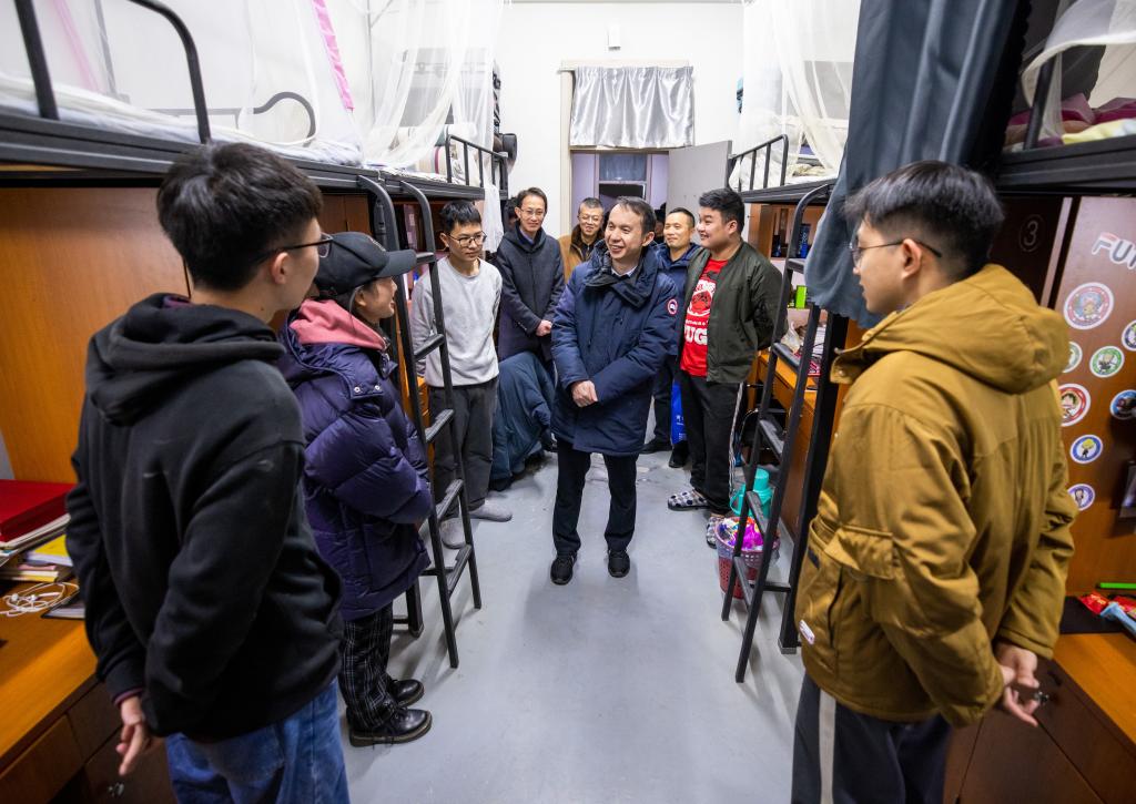 为落实“四个一”制度,2020年12月15日晚,浙江海洋大学校长陈建孟走访结对共建支部寝室,与同学们亲切交流。在学生寝室,陈建孟详细询问了同学们的生活、学习情况,并听取他们对住宿环境、饮食状况的意见建议,切实了解他们的困难与需求。当得知几位同学都在备考研究生入学考试后,陈建孟询问了他们报考学校、复习进展...