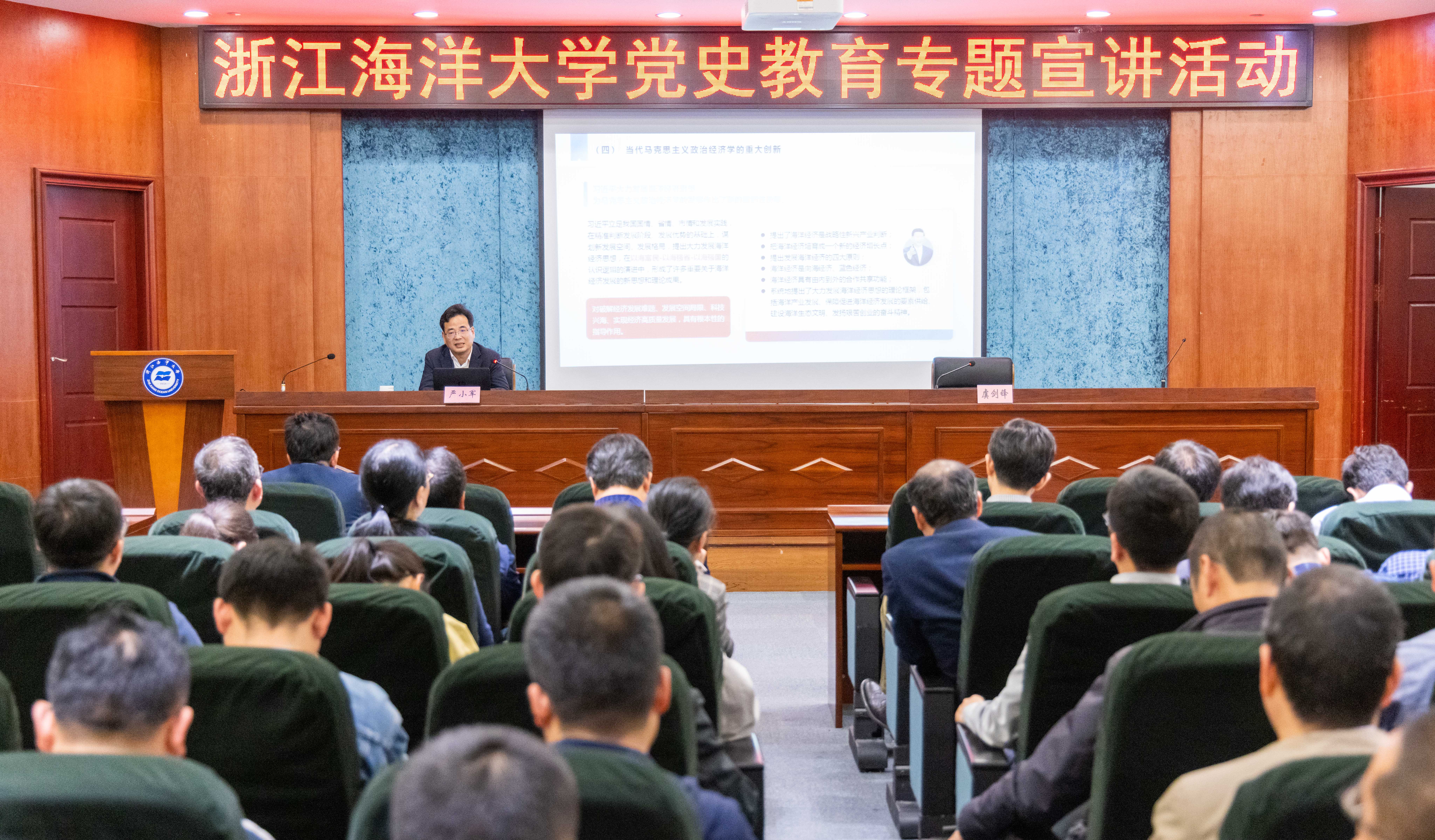 4月25日,根据中共浙江海洋大学委员会党校“处级以上领导干部党史专题培训班”和“党支部书记党史专题培训班”安排,学校在图书馆一楼报告厅开展了第二次党史专题辅导。全体中层干部,各党支部书记、专职组织员参会。校党委书记严小军作了题为《习近平大力发展海洋经济重要论述》的党史学习教育专题辅导。严小军从科学内...