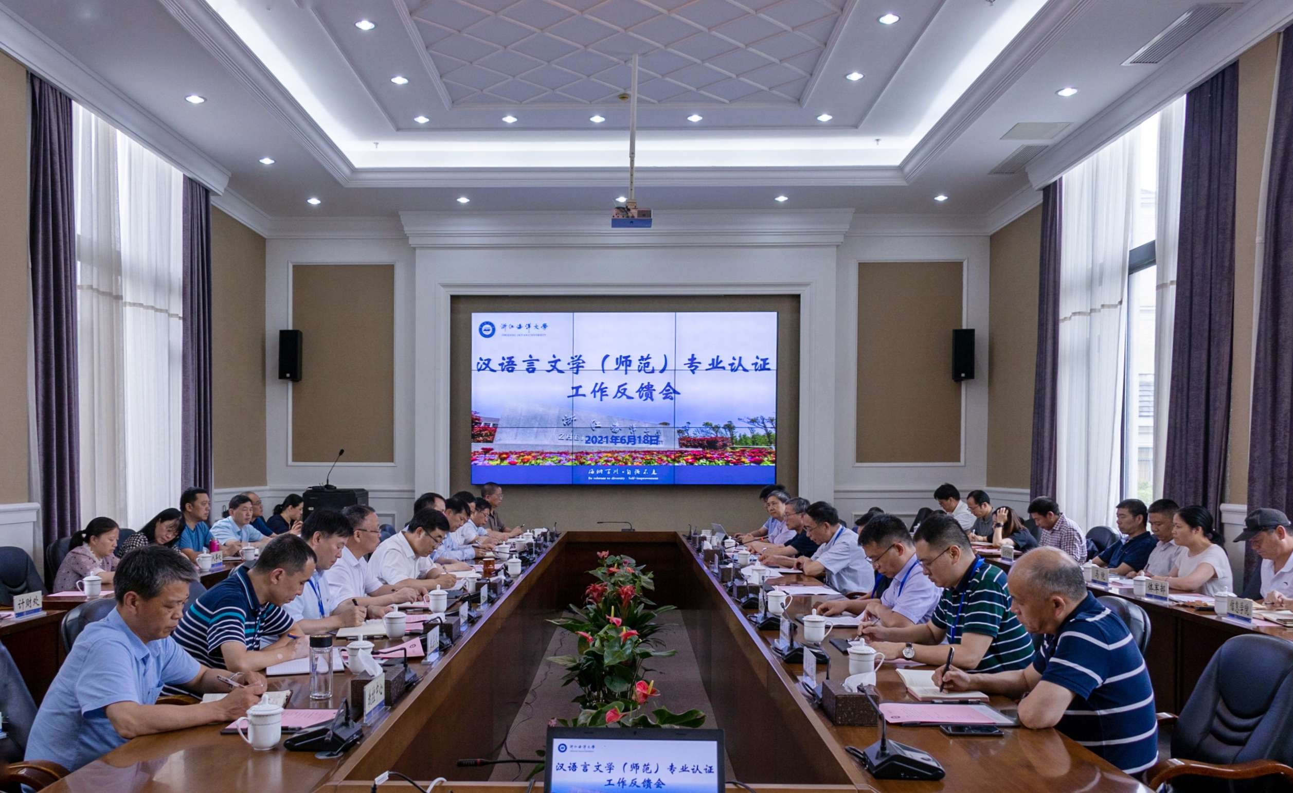 6月18日下午,学校举行汉语言文学(师范)专业认证专家反馈会。全体专家组成员,学校领导陈建孟、叶舟、王捷、徐士元、谢永和、张真柱和舟山市教育局曾时尚调研员等出席会议。在为期三天的实地考察中,专家组根据“学生中心、产出导向、持续改进”的“三大理念”,“质量监控机制、达成度评价机制、持续改进机制”的“三...