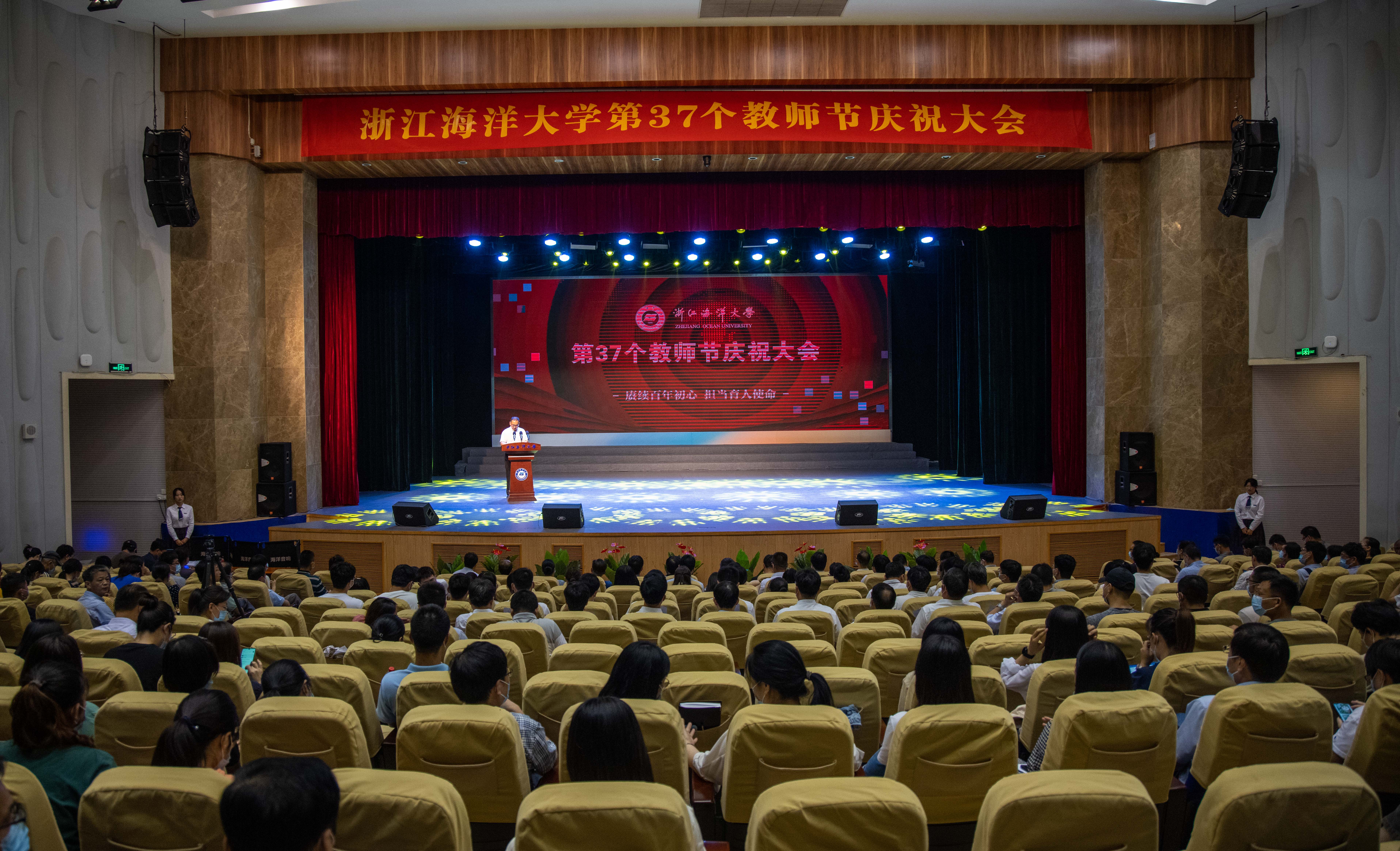 赓续百年初心,担当育人使命。9月10日上午,浙江海洋大学第37个教师节庆祝大会在杨存国会展中心报告厅隆重举行。校领导严小军、陈建孟、叶舟、王捷、徐士元、徐汉祥、刘秀丽、张真柱、陈宏祖出席。学校各教学科研单位党政主要负责人、教师代表,管理服务单位代表,全体新入职教师和学生代表近700名师生参与大会。大会由...