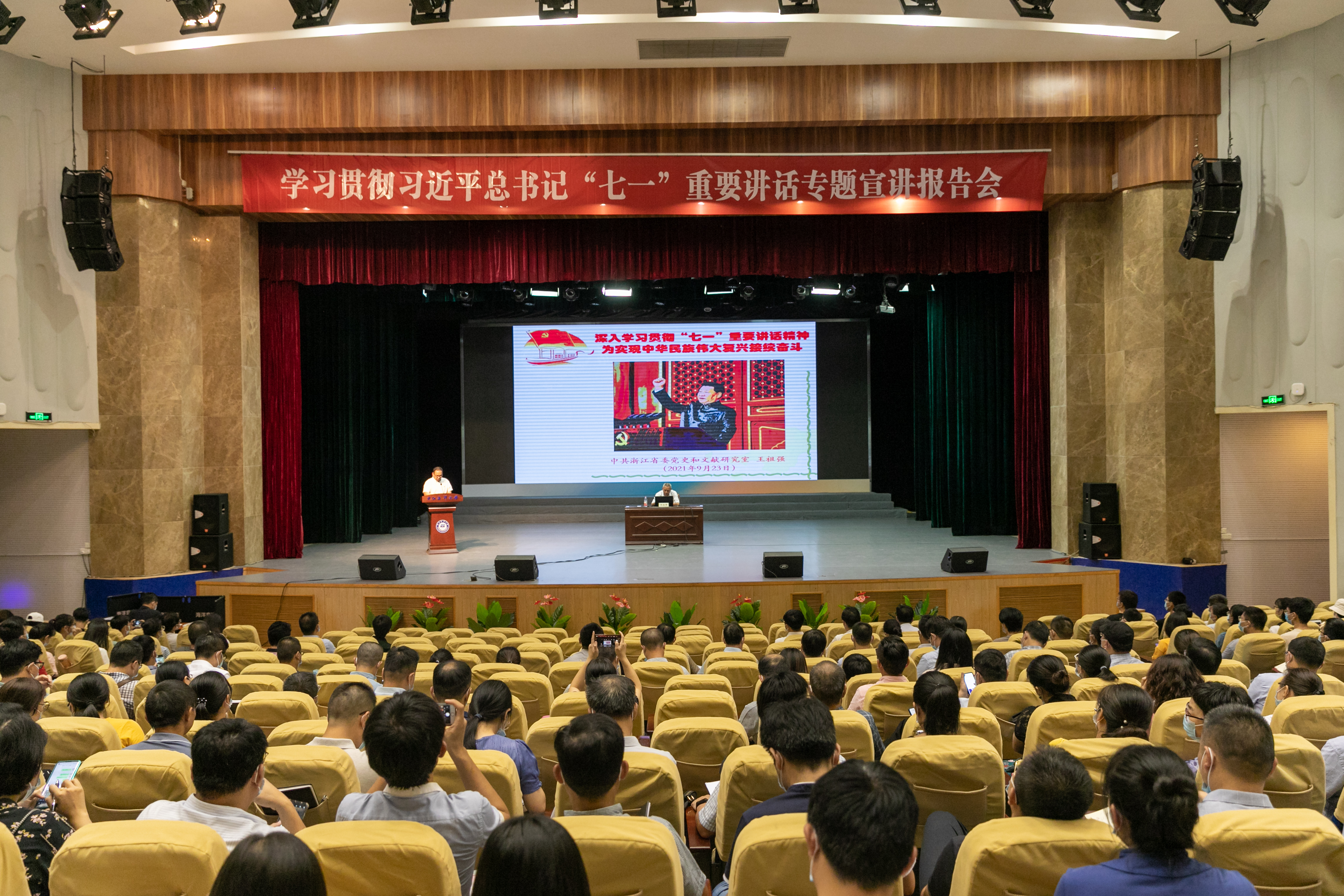 为深入学习贯彻习近平总书记“七一”重要讲话精神,9月23日下午,学校在新城校区杨存国会展中心报告厅举行学习贯彻习近平总书记“七一”重要讲话专题宣讲报告会,特邀省委党史和文献研究室副主任王祖强来校宣讲。校领导王捷、徐士元、徐汉祥、刘秀丽、虞剑锋、许文军,科级以上干部,师生代表600余人参加报告会。报告...