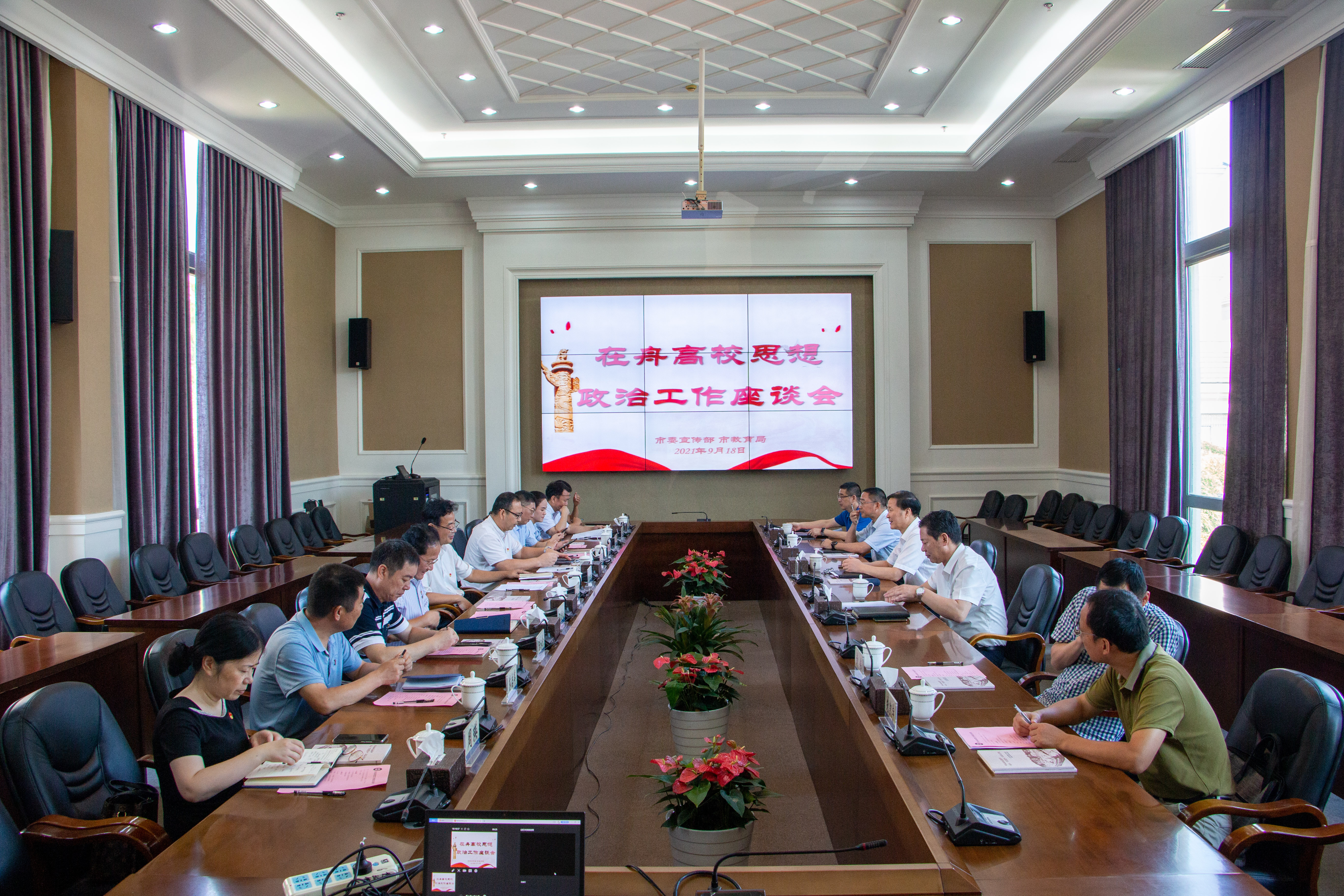 9月18日,在舟高校思想工作座谈会在浙江海洋大学召开。市委常委、市委宣传部部长沈国通出席会议并讲话,浙江海洋大学党委书记严小军致辞,党委副书记王捷交流了学校近年来思想政治工作的特色亮点、思路和打算。会议由市委宣传部常务副部长张跃良主持。会议贯彻落实了习近平总书记在庆祝中国共产党成立100周年大会上的重...