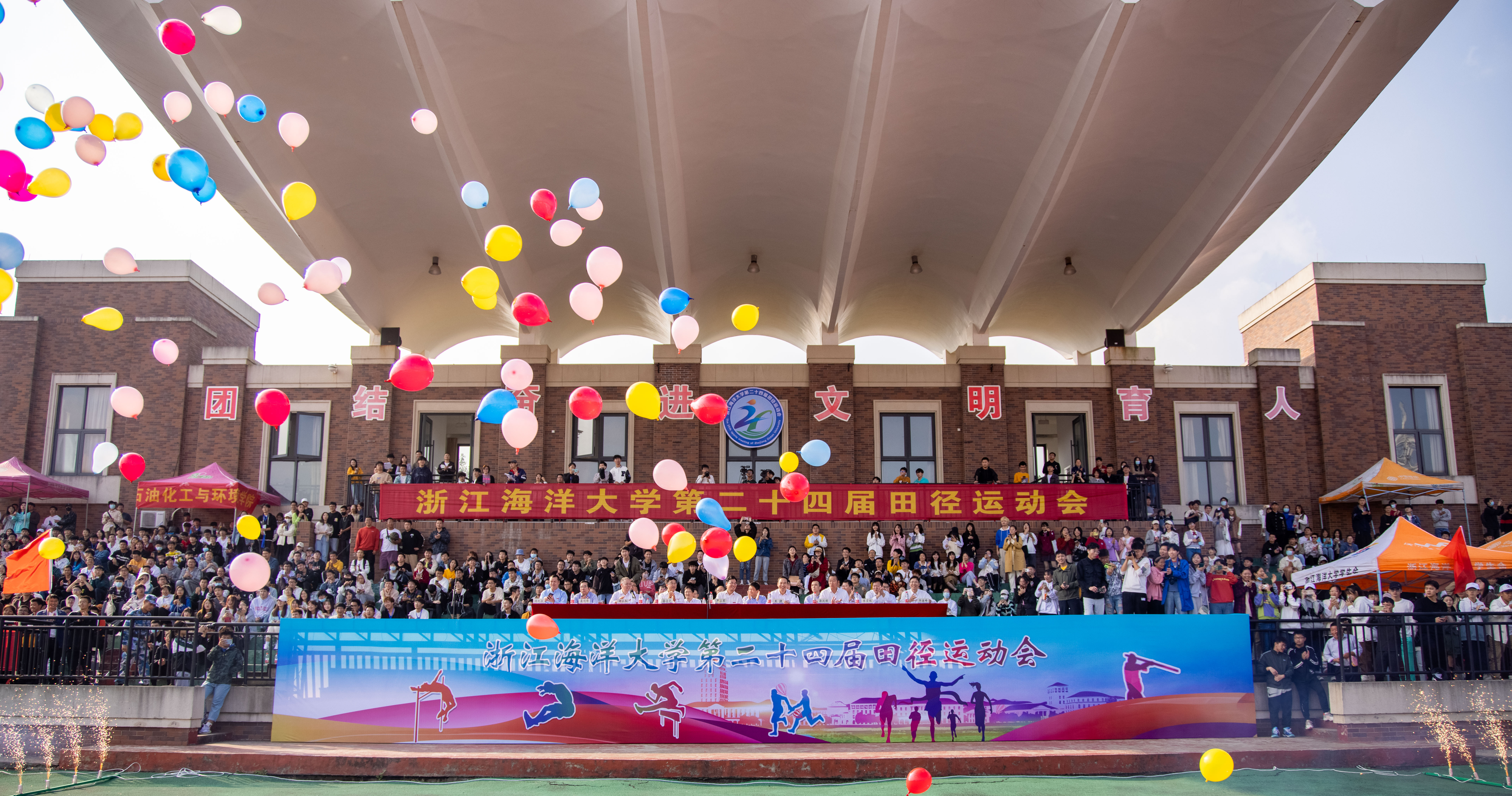 霜林初染,秋水长天。10月27日下午,浙江海洋大学在新城校区恒尊体育场迎来了第二十四届田径运动会。学校党委书记严小军,副书记王捷,副校长徐士元、徐汉祥、谢永和,党委委员、组织部长虞剑锋,党委委员、宣传部长陈宏祖以及全体校体育运动委员会委员出席运动会开幕式。队列式结束后,严小军宣布本次田径运动会正式开...