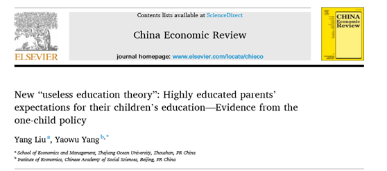 近日,学校经济与管理学院刘杨教授以第一作者身份在国际SSCI权威期刊《ChinaEconomicReview》上发表了题为New“UselessEducationTheory”:HighlyEducatedParents’ExpectationsforTheirChildren’sEducation—EvidencefromtheOne-ChildPolicy的学术论文。DOI:10.1016/j.chieco.2022.101764该文利用中国家庭追踪调查(CF...