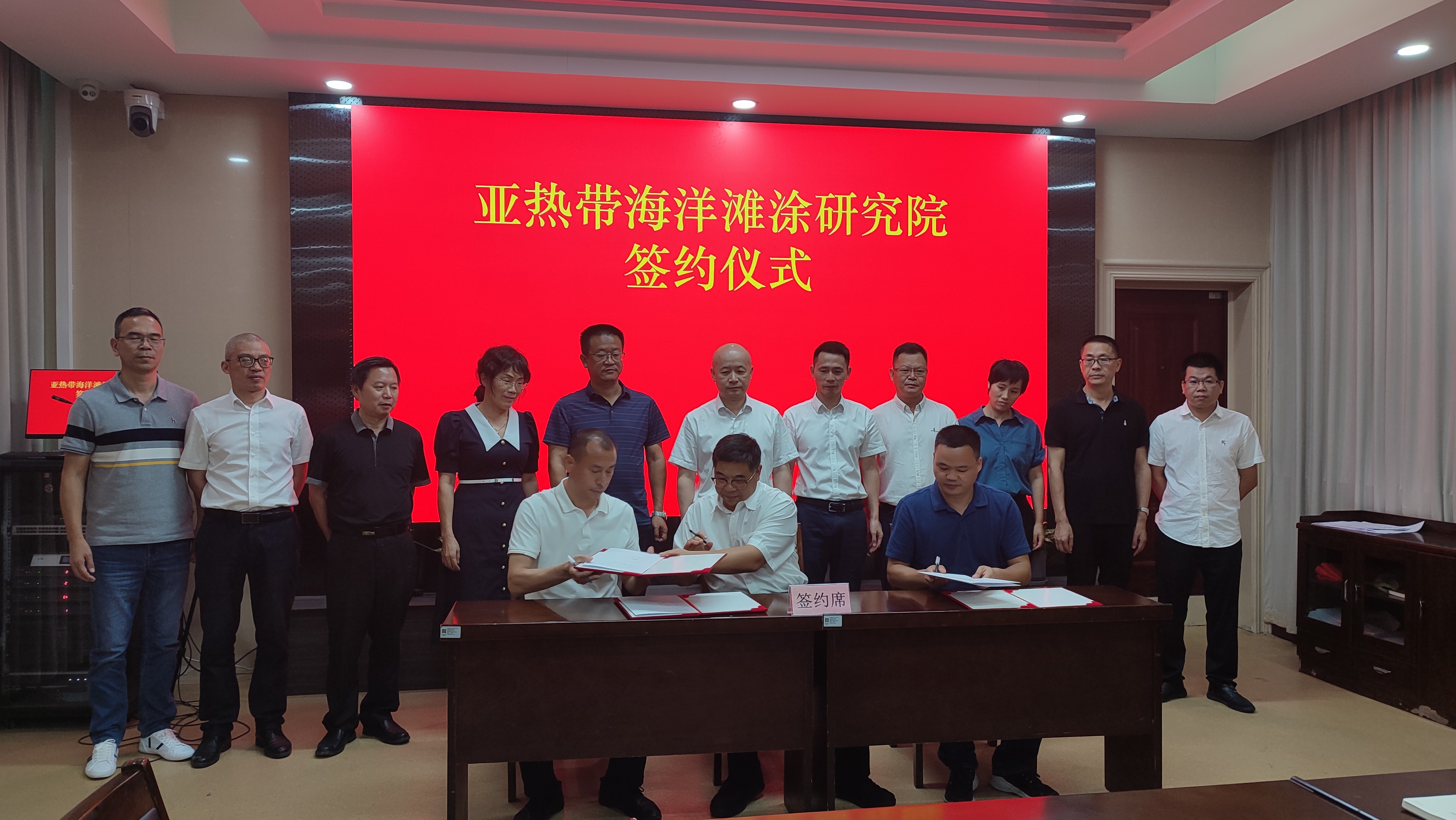 9月21日,浙江海洋大学水产学院联合宁波大学海洋学院与苍南县沿浦镇共同签约,合作成立全国首个亚热带海洋滩涂研究院。研究院主要任务是深入开展海洋滩涂生态保护与修复、生态养殖、生态旅游、休闲渔业、滩涂生物高值化、滩涂演化、红树林发展与运用、海洋蓝色碳汇研究与开发、海洋管理应用开发等方面研究,积极推进亚热...
