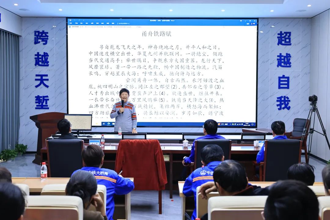 11月29日下午,舟山著名诗人、知名古代文学研究学者,我校退休教授方牧先生在中铁大桥局甬舟铁路项目部科技馆学术报告厅,为大桥建设者、众多文学爱好者进行了一场题为《诗人方牧谈<甬舟铁路赋>创作》专题讲座。舟山市甬舟铁路建设指挥部副总指挥罗士瑾,中铁大桥局甬舟铁路项目党工委书记、常务副经理、工会工委...