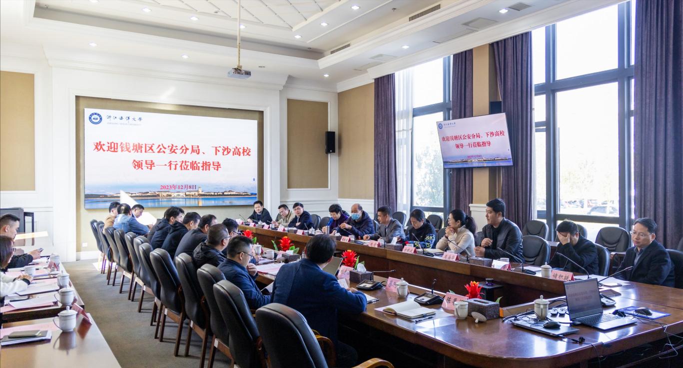 12月8日上午,杭州市公安局钱塘区分局党委委员、副局长蒋晓敏等领导、下沙高教园区14所高校保卫处领导一行来校调研“平安高校”创建方面的先进经验。浙江海洋大学党委副书记王捷,舟山市公安局政保支队、新城分局等领导,浙江海洋大学保卫处、宣传部、学工部、研工部、团委等部门负责人陪同调研。会上,王捷对蒋晓敏副局...