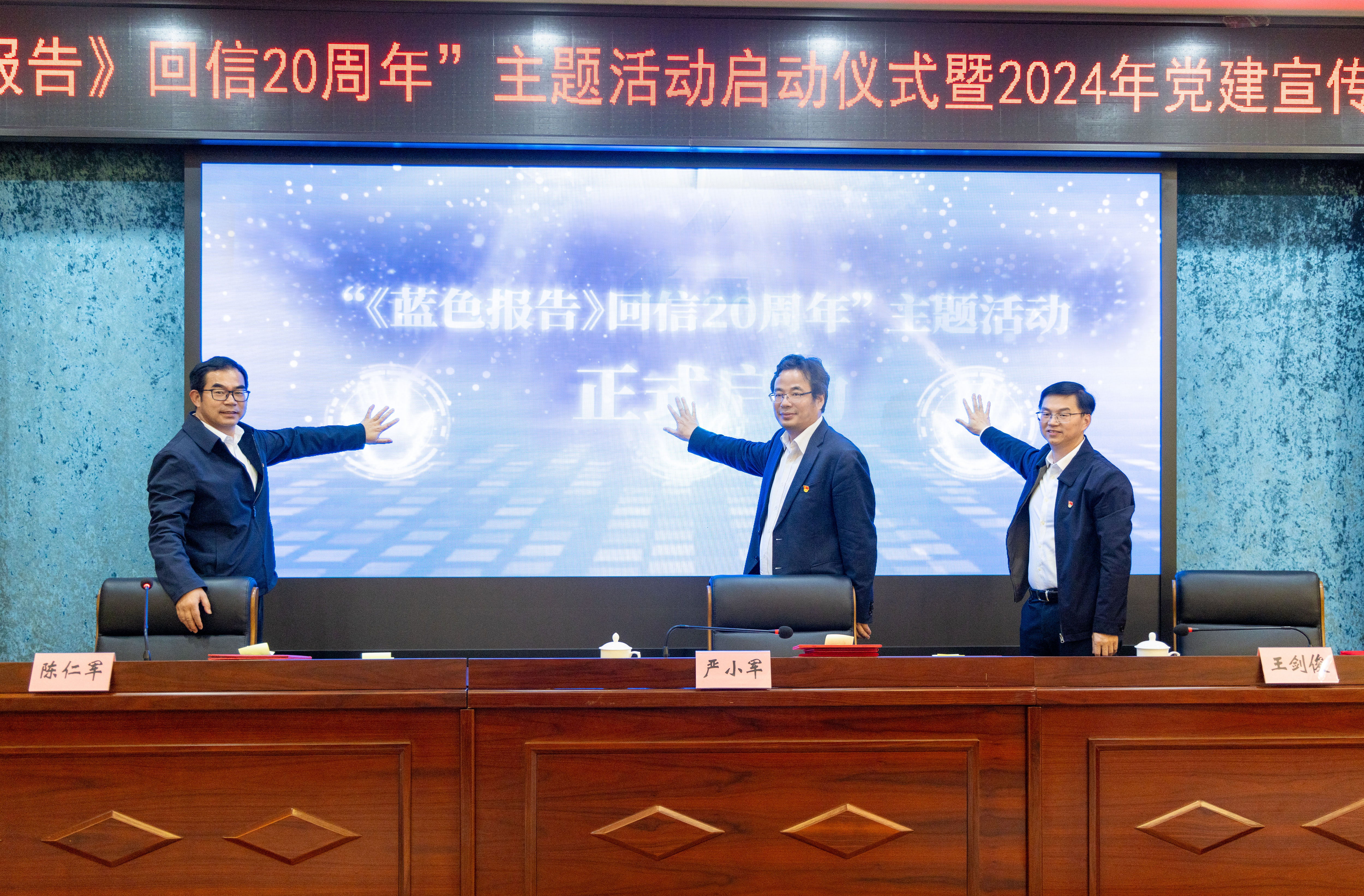 4月16日下午,学校在新城校区图书馆报告厅举行“《蓝色报告》回信20周年”主题活动启动仪式暨2024年党建宣传工作会议。校党委书记严小军出席会议并讲话。副书记王剑俊介绍主题活动方案,副书记陈仁军主持会议。学校领导谢永和、卢金树、王健鑫、林静、韩涛出席会议。学校全体中层干部、各二级党组织负责人,思政课教师,...